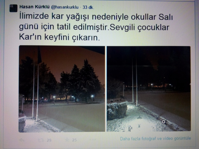 Yoğun kar yağışı nedeniyle Burdur Merkez ve İlçelerindeki İlkokul, Ortaokul ve Liseler bir gün süreyle tatil edildi. Milli Eğitim Müdürlüğü tarafından alınan kararla okullar bir gün süreyle tatil edildi. Vali Hasan Kürklü Twitter hesabından Vali Konağının bahçesinden çektiği fotoğrafları paylaştı. Vali Kürklü ” İlimizde kar yağışı nedeniyle okullar Salı günü için tatil edilmiştir. Sevgili çocuklar kar’ın keyfini çıkarın” mesajını takipçileri ile paylaştı.