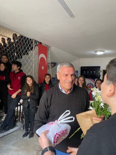 Okulun en üst merdivenlerinden okul girişine kadar sıralanan öğrenciler çiçeklerle ve hediyelerle sevgi seli oluşturdu. Törende konuşan okul müdürü Hüseyin Işık “Keşke daha çok çalışacak zamanımız olsa idi kendisine her şey için çok teşekkür ediyoruz” dedi.