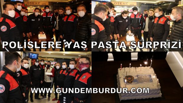 Burdur’da Gazi Caddesi’nde faaliyet gösteren Oskar Pastahanesi  10 nisan Polis gününde Burdur’da görevli polislere sürpriz yaş pasta hazırladı.