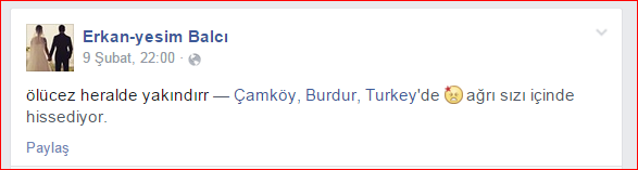 Burdur’un Gölhisar İlçesi’ne bağlı Çamköy Beldesi’nde yaşayan 26 yaşındaki Erkan Balcı Facebook sayfasına bir gün önce ‘Ölücez herhalde yakındır’ yazdı ertesi gün intihar etti.