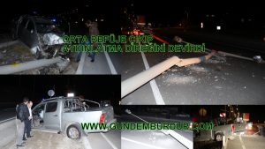 Akşam saat 20.0 sıralarında meydana gelen trafik kazasında Ankara’dan Burdur’un Yeşilova İlçesi’ne gitmekte olan Gülali Yıldız’ın yönetimindeki 06 TBB 29 Plâkalı kamyonet sürücünün direksiyon hakimiyetini kaybetmesi sonucu Kışla Mahallesi yakınlarında orta refüje çıktı ve aydınlatma direğine vurarak durabildi. İkiye bölünen beton direk karayoluna devrildi.