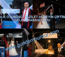 Burdur’lu Hüseyin Çelik ve Fazilet Dilmaçünal Çelik çiftinin gelin arabası Halk Otobüsü oldu.