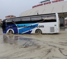 Burdur’da aniden başlayan sağanak yağış nedeniyle Şehirlerarası otogarın peronlarını sel bastı.