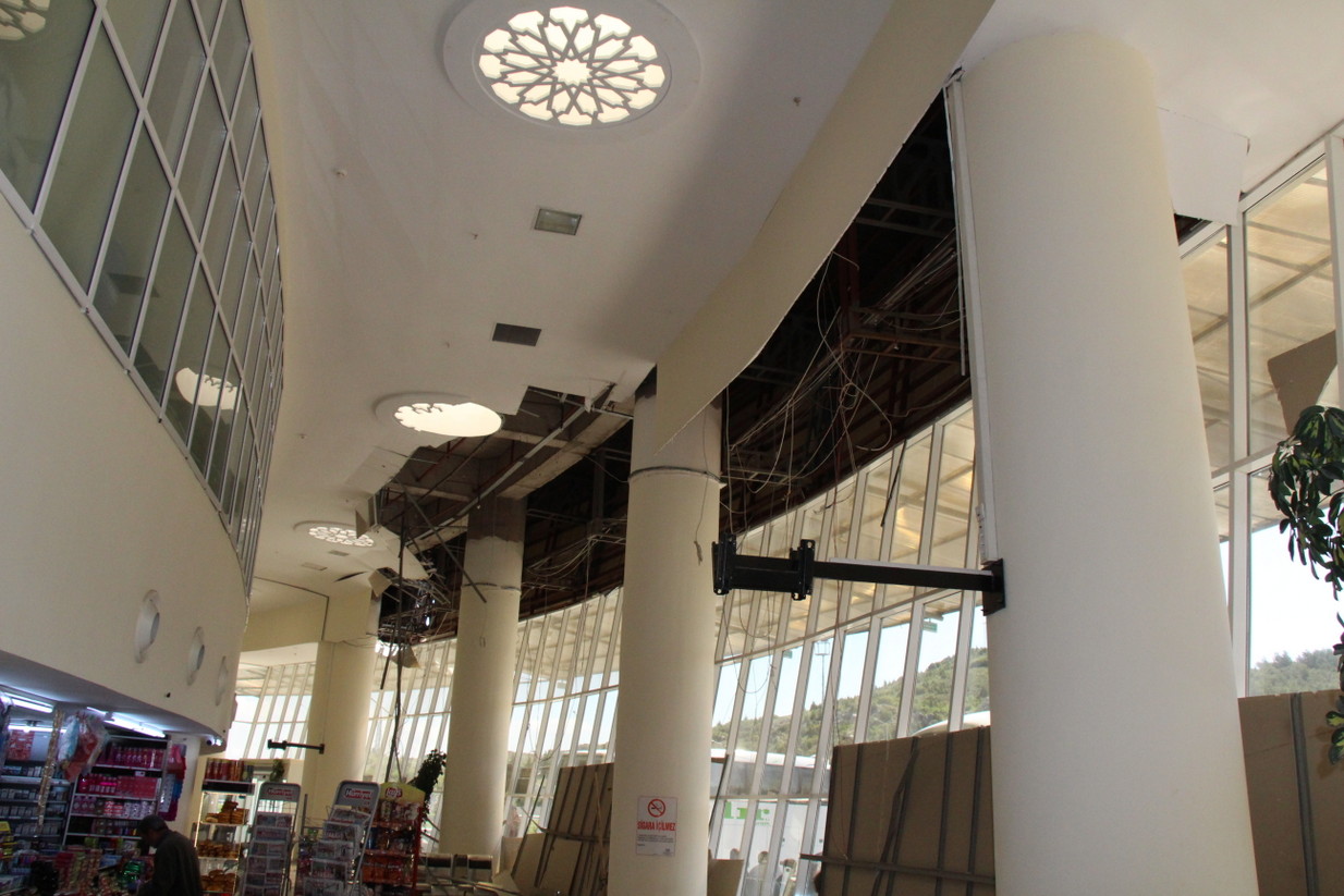 Burdur Şehirlerarası Otobüs Terminalinin alçıpan tavanının bir kısmı çöktü.