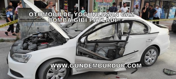 Burdur merkez Bağlar Mahallesi İbrahim Zeki Burdurlu Caddesi’nde park halindeki otomobilin bagajında bulunan piknik tüpündeki sızıntı nedeniyle arabada gaz sıkışması oldu. Otomobiline binen Murat Ç. (41)’nin kontağa basması ile yoğunlaşan gaz çok büyük bir gürültü ile bomba gibi patladı. Olay yerine itfaiye ve sağlık ekipleri sevk edildi.