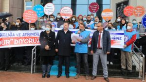 ve ülke sathındaki sağlık çalışanlarının feryadı neticesinde, Siyasi irade, eksikliğin farkına varmış görünüyor. Açıklamalara bakacak olursak, zam konusu, bütçe görüşmeleri neticesinde tekrar Meclis gündemine gelecek. Buradan siyasi iradeye sesleniyoruz; Meclis’ten, yüzbinlerce sağlık çalışanının üvey evlat olmadığını gösteren kapsamlı ve adil bir zam kararı bekliyoruz. Tersi bir uygulama; tüm sağlık ve sosyal hizmet kolu çalışanlarını üzer. Tersi bir uygulama, sağlık çalışanlarını meslekten soğutacağı gibi, sağlık sistemini de ciddi ölçüde yaralar. Biliyorsunuz, pandemiyle mücadele tüm hızıyla devam ediyor. Pandemiyle mücadelemizdeki başarımız dolayısıyla bizleri yani fedakâr sağlık çalışanlarını alkışlamayan, teşekkür etmeyen kalmamıştı. Buradan sormak istiyoruz; sağlık çalışanlarını alkışlıyoruz, teşekkür ediyoruz diyenler, sağlık çalışanlarının bir kısmını mı alkışladılar…? belli branştaki sağlık çalışanlarına mı teşekkür ettiler…? Hayır… Ayrım yapmaksızın sağlık çalışanlarının tamamına teşekkür ettiler ve alkışladılar değil mi? O günler ne çabuk unutuldu… Zam konusuna gelince, bu ayrımcılık niye? Ayrımcılık yaparak, yüzbinlerce sağlık çalışanıyla helalleşeceklerini mi düşünüyorlar? Ya da ayrımcılık yaparak, çalışma barışını sağlayacaklarını, çalışanların moral ve motivasyonu artıracaklarını mı düşünüyorlar? Saha gerçekliğinden yoksun, oldu-bitti masa başı kararlar bunların olması mümkün değil! Yüzbinlerce sağlık çalışanının takdirini kazanmanın yolu belli; hak ve hakkaniyet ölçüsünde, bir kısmına değil, tamamına zam yapmaktır. 1 milyon sağlık çalışanının bir kısmına zam yapıp, geri kalanını yok saymak; çalışma barışını baltalamaktan, sağlık çalışanlarını kutuplaştırmaktan başka bir anlam ifade etmez. Hele tüm bunlar, sağlık çalışanlarını en iyi anlaması gereken sağlık bakanlığı tarafından yapılıyorsa bu çok daha vahim bir durumdur.