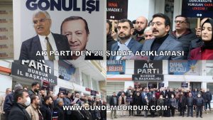 AkParti İl Başkanı Volkan Mengi’de İl Başkanlığı önünde yaptığı basın açıklamasında post-modern darbe olarak adlandırılan ve 25 yılı geride bırakan 28 Şubat sürecinin milletin inancına, iradesine, değerlerine, insan haklarına, demokrasiye ve özgürlüklere yapılan fiili bir darbe olduğunu belirtti.