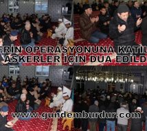 Türk Silahlı Kuvvetleri’nin Suriye’nin Afrin Bölgesinde PKK/KCK/PYD-YPG ve DEAŞ’a mensup teröristleri etkisiz hale getirmek üzere başlattığı ‘Zeytin Dalı Harekatı’na katılan askerler için Burdur’da Pazar Camiinde Sabah namazı öncesinde Fetih Suresi okundu. Sabah Namazından sonra ise Müftü Yardımcısı Halil Taş tarafından dua edildi.