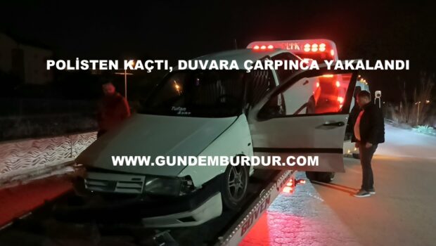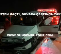 BURDUR’da polisten kaçan ehliyetsiz genç duvara çarpınca yakalandı.