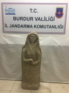 BURDUR’da, jandarma tarafından düzenlenen operasyonda, Roma dönemine ait, 120 santimetre boyunda kadın heykeli ele geçirildi.