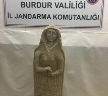 Burdur İl Jandarma Komutanlığı ekipleri, O.D. ve M.T. adlı şüphelilerin ellerinde bulundurduğu tarihi eseri Antalya’dan getirip, Burdur’da satacağı bilgisine ulaştı. Şüphelileri takibe alan ekipler, dün Karamanlı- Yeşilova yolunun mermer ocakları yol ayrımı girişinde 2 şüphelinin bulunduğu aracı durdurdu. Adli makamlardan alınan kararla araçta yapılan aramada, 120 santimetre boyunda, Roma dönemine ait, kadın betimlemeli heykel ele geçirildi.