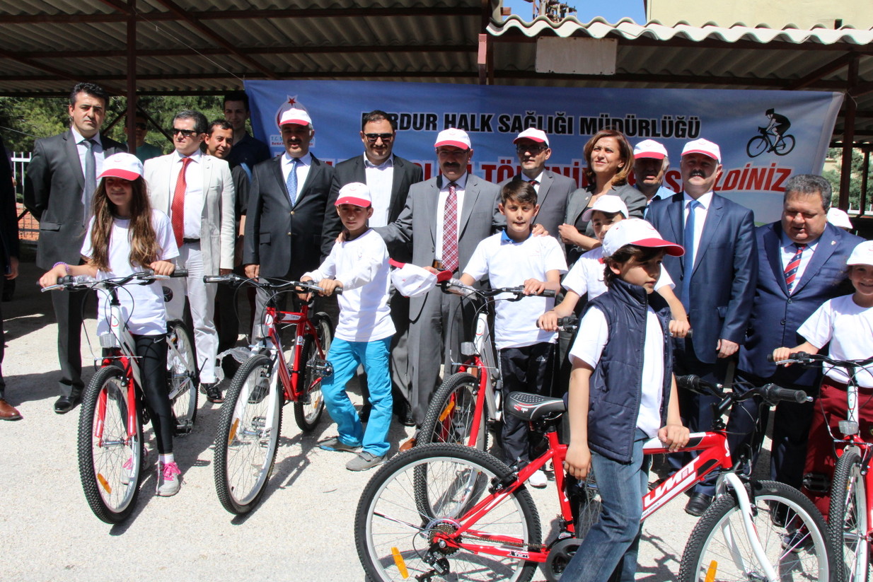 Burdur’da düzenlenen törenle Sağlık Bakanlığı’nın “Türkiye Sağlıklı Beslenme ve Hareketli Hayat Programı” kapsamında gönderdiği 250 bisiklet, Burdur’daki öğrencilere verildi.