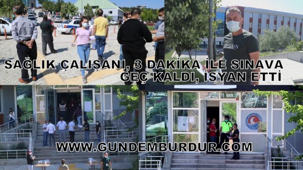 Burdur’da YKS sınavına girmek için Makü İstiklal Yerleşkesi’ne gelen sağlık çalışanı 3 dakika geç kaldığı için sınav salonuna alınmayınca isyan etti.