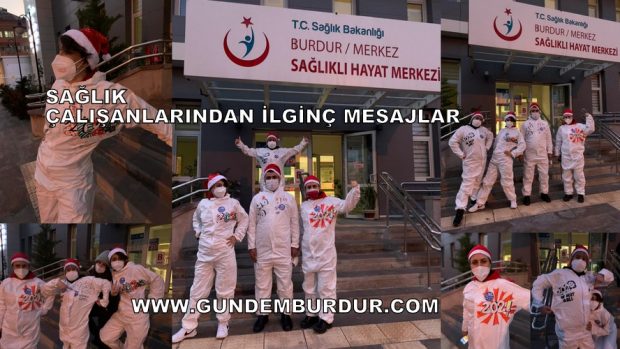 Burdur Sağlıklı Hayat Merkezi çalışanları 2020’nin son mesaisinde giydikleri koruyucu kıyafetlerin üzerine çeşitli mesajlar yazdı.