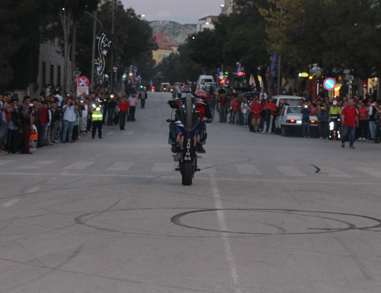 Motosiklet akrobasi ustası Şahin Algaç’ın Cumhuriyet Meydanında yaptığı motosiklet şov Burdurlulardan büyük alkış aldı.