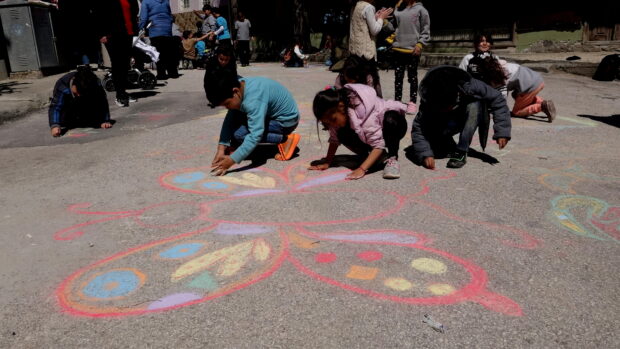 Ulu Cami Civarı Güngör Sokak’ta gerçekleştirilen etkinlikte, Sakarya İlkokulu Anasınıfı, 1,2,3 ve 4’üncü sınıfta eğitim gören 180 öğrenci, Makü Eğtim Fakültesi’nde eğitim gören 50 öğretmen adayı ve veliler ile birlikte Üçdibek Mahallesi Güngör Caddesi zeminine ‘bahar’ temalı resimler yaptı.