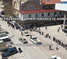 BURDUR’da salı günleri kurulan halk pazarına giriş için vatandaşlar yaklaşık 1 km’lik kuyruk oluşturdu.