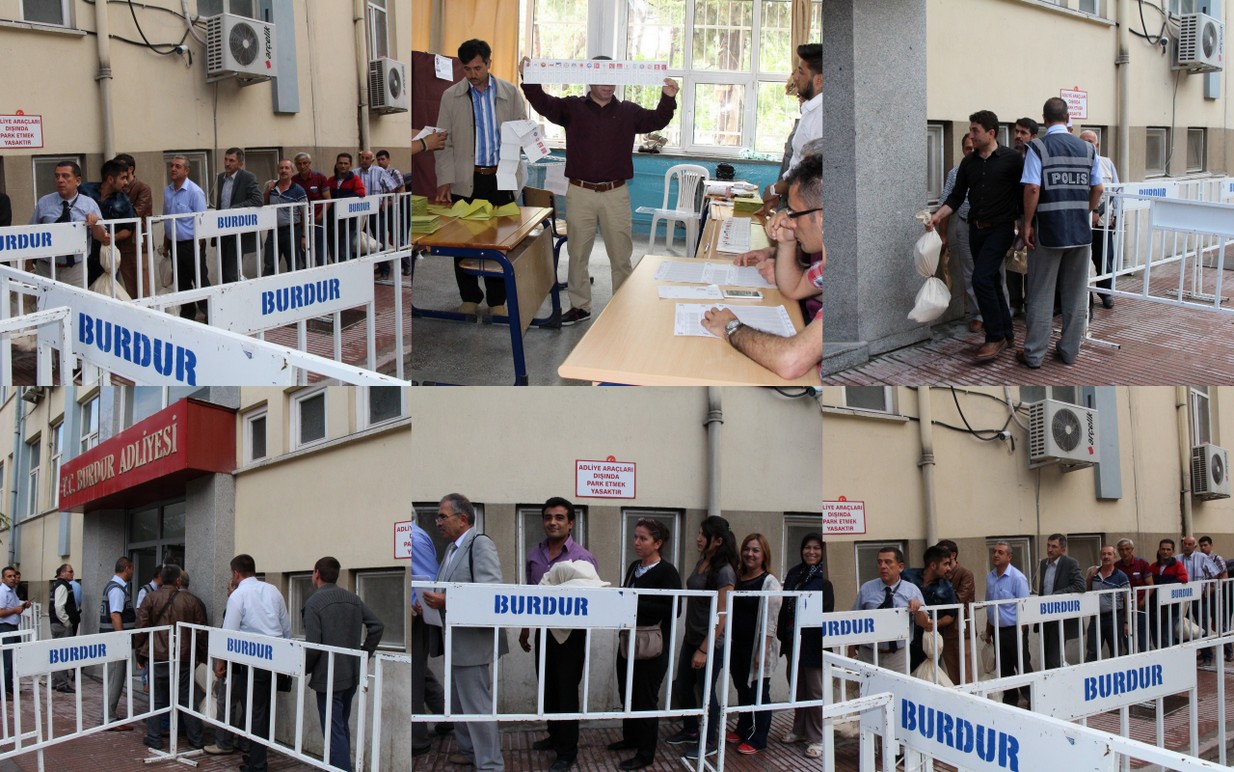 Saat 17.00 da sandıkların kapanmasıyla birlikte sayım işlemini bitiren Sandık kurulları oy çuvallarını Merkez İlçe Seçim Kuruluna yetiştirme telâşına düştü. Sayımı bitiren sandık kurullarının bazıları koşarak bazıları özel araçları bazıları da emniyetin araçları ile oy çuvallarını Burdur Adliyesi’ndeki Merkez İlçe Seçim Kuruluna yetiştirme telâşına düştüler.