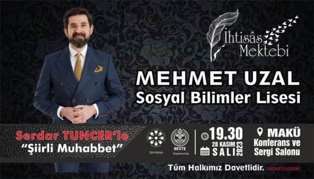 Mehmet Uzal Sosyal Bilimler Lisesi’nin İhtisas Mektebi projesi kapsamında Şair-Yazar Serdar Tuncer bugün Burdurlularla buluşacak.