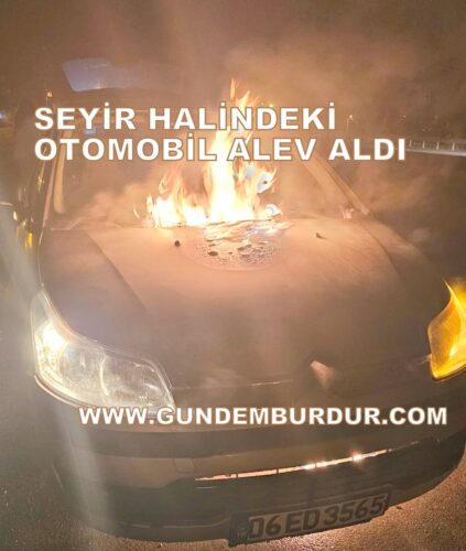 Burdur’da seyir halinde alev alan bir otomobil kullanılamaz hale geldi.