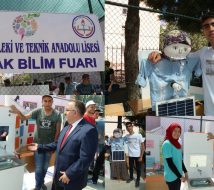 Okul bahçesinde açılan Fuarda sergilenen projeler İl Milli Eğitim Müdür Vekili Hüseyin Çetinkaya, Okul Müdürü Mehmet Deveci, öğretmenler ve öğrencilerden beğeni aldı.