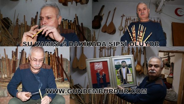 BURDUR’lu sipsi sanatçısı Mehmet Bedel, evinin altındaki atölyede su kamışını 5 dakikada sipsi haline getiriyor.