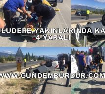 Burdur’dan Fethiye istikametine gitmekte olan Kemal Aşkan (59) yönetimindeki 06 FC 806 plakalı otomobil sabah 08.30 sıralarında 20’inci Kilometrede Suludere Köyü yakınlarında sürücünün direksiyon hakimiyetini kaybetmesi sonucu refüje devrilerek takla attı.