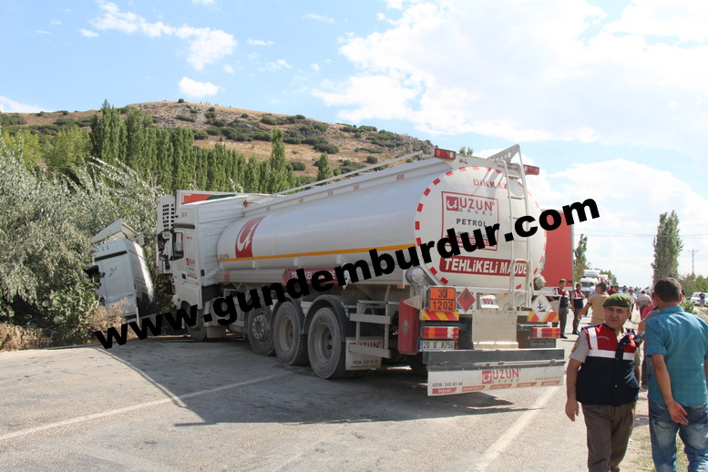 Tefenni’den Burdur istikametine gelmekte olan 44 yaşındaki Zekerriyya Yakupoğlu yönetimindeki 54 AY 491 Plakalı TIR, Suludere Köprüsü girişinde Burdur’dan Tefenni İstikametine gitmekte olan 34 yaşındaki İsmail Doğan’ın kullandığı 20 U 8576 Plakalı Motorin yüklü Tankerle kafa kafaya çarpıştı. Araç sürücüleri kazadan yara almadan kurtulurken Burdur-Tefenni Karayolu yaklaşık 2 saat süreyle trafiğe kapandı. Yolda 5 Km’yi bulan araç kuyruğu oluştu. Yol kazaya karışan araçların kaldırılmasından sonra trafiğe açıldı.
