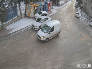 BURDUR’da meydana gelen trafik kazası Kent Güvenlik Yönetim Sistemi (Mobese) kameralarına yansıdı.