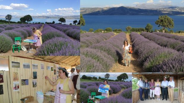 RESSAM Keziban Ertuğrul Yıldırım, susuzluğa dikkat çekmek için Lisinia Doğa Proje Alanı’nda buluanan Burdur Gölü manzaralı Lavanta bahçesinde resim yaptı.