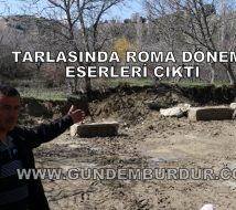 Burayı kazan Candan, MS 2’inci yüzyıl Roma Dönemine ait olduğu tahmin edilen taşları buldu. Candan hemen durumu Jandarmaya bildirdi. Jandarma ekipleri tarlayı şeritle çevirerek koruma altına aldı.
