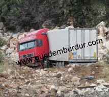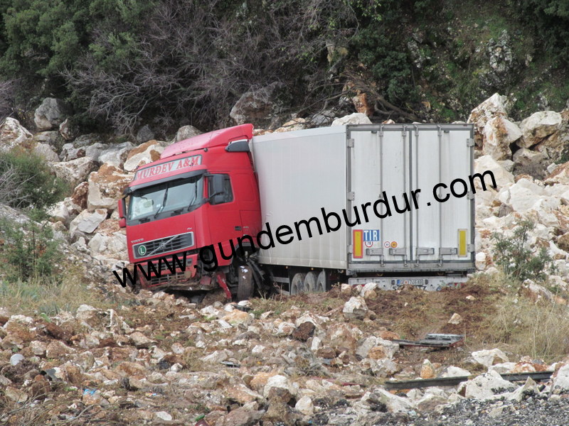 Makedon uyruklu 39 yaşındaki Deyan Vangelov’un kullandığı GE 1746AB Plakalı TIR sürücüsünün dreksiyon hakimiyetini kaybetmesi sonucu Burdur-Antalya Karayolu Çeltikçi Beli rampalarında yol kenarındaki ağaca çarparak 50 metrelik uçuruma yuvarlandı. Kazada araç sürücüsü Deyan Vangelov yaralandı. Sürücü kazayı görenlerin haber vermesiyle olay yerine gelen 112 Acil Ekipleri tarafından Bucak Devlet Hastanesi’ne kaldırıldı. Sürücünün hayati tehlikesinin bulunmadığı öğrenildi.