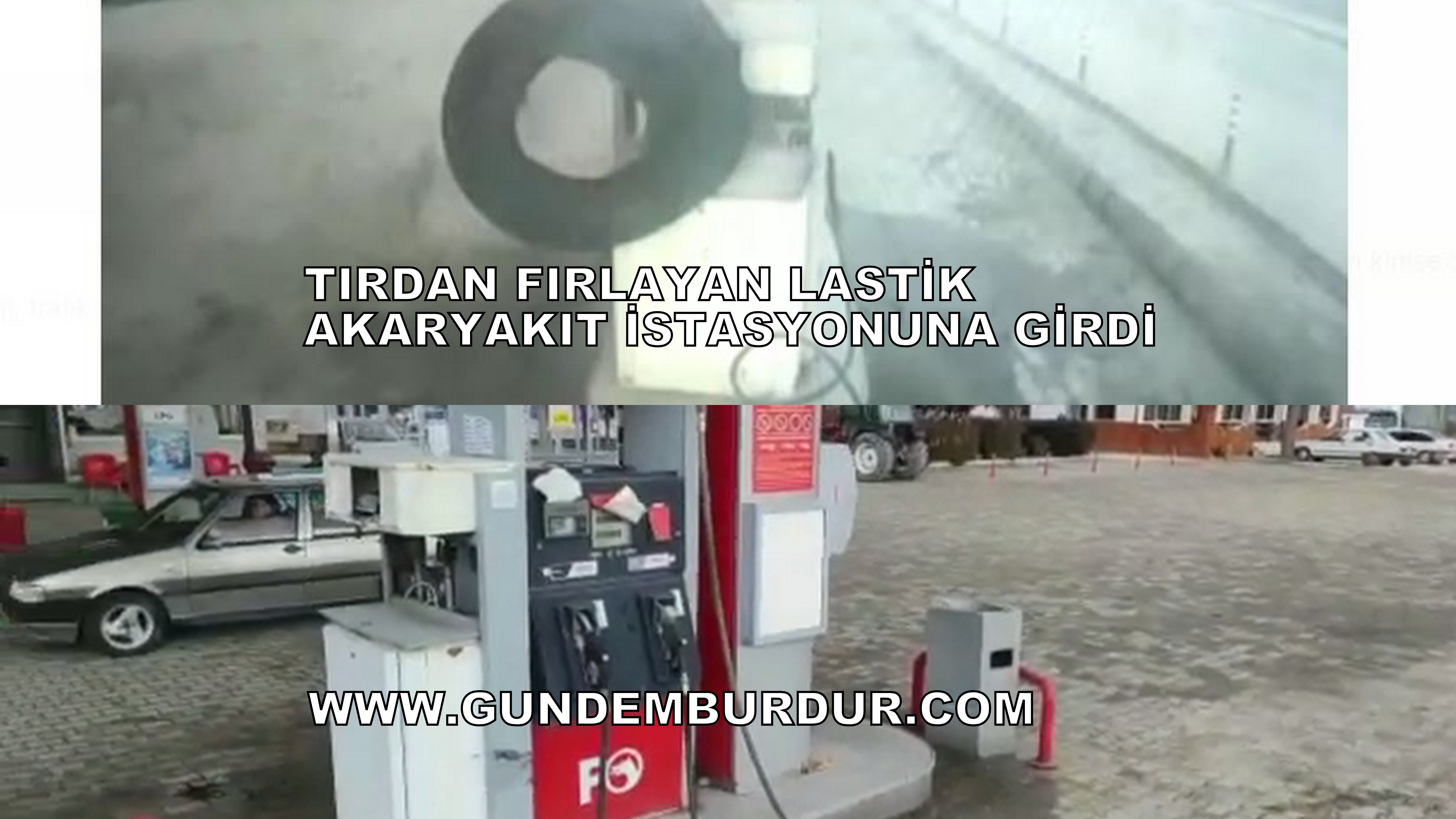 BURDUR’da Tırın dingilinden çıkan lastik akaryakıt istasyonunun pompalarına çarptı. Olay anında pompaların yanında kimse olmaması olası bir faciayı önledi.