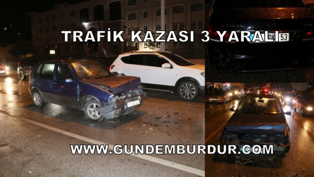 BURDUR’da kırmızı ışıkta duran otomobile çarpan otomobildeki 3 kişi yaralandı.