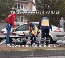 BURDUR’da kayganlaşan yolda aydınlatma direğine çarpan otomobildeki 5 kişi yaralandı.
