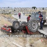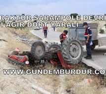 Edinilen bilgiye göre; Burdur’dan merkeze bağlı Kökez Köyü’ne gitmekte olan Halil Acar (53)’ın kullandığı traktör Büğdüz köyü yakınlarında saat 16.00 sıralarında sürücüsünün direksiyon hakimiyetini kaybetmesi sonucu şarampole devrildi. Devrilen traktör yaklaşık 100 metre sürüklendi. Traktörün üzerinde bulunan sürücü Halil Acar (53), eşi Gülay Acar (48), kızı Canan Acar (26) ile oğlu Musa Berk Acar (7) ters kapanan traktörün altında kalarak yaralandı.
