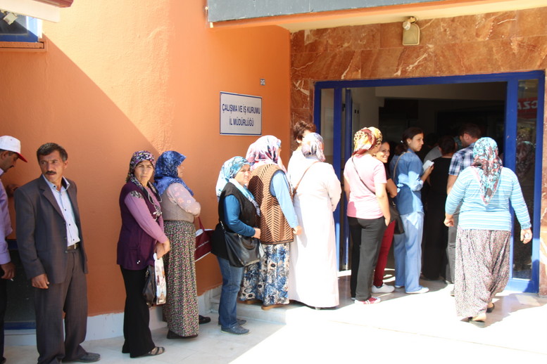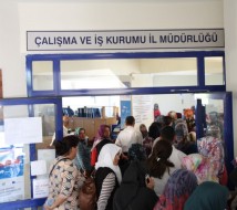 İş Kurumu İl Müdürlüğü önünde uzun kuyruklar oluşturan vatandaşlar “İş olsunda ne olursa olsun dediler. Kayıt olmak için 3-4 saat sıra beklediklerini belirten Hacer Mete, Emine Ün ve Asuman Baş isimli kadınlar “İş çıksında ne olursa olsun” dedi.
