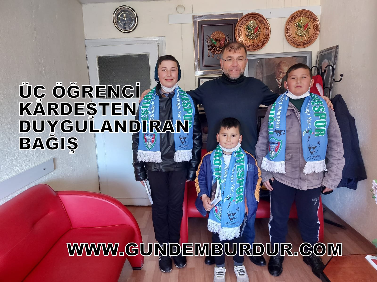 Burdur’un Yeşilova İlçesi’nde ilkokul ve ortaokul öğrencisi üç kardeş biriktirdikleri harçlıklarını Yeşilova Belediyespor’a bağışladı.