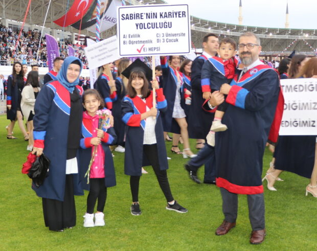 14 yıllık öğretmen Sabire Sipahi, dün düzenlenen Makü mezuniyet töreninde üçüncü üniversitesini bitirmenin mutluluğunu eşi ve çocukları ile yaşadı. 3 çocuk annesi Burdur Güzel Sanatlar Lisesi görsel sanatlar öğretmeni Sabire Sipahi üçüncü üniversitesini bitirmenin mutluluğunu eşi MAKÜ öğretim görevlisi Veli Sipahi ve Ayşe Nil (11), Azra (6) ve Ahmet Uras (2) isimli çocuklarıyla yaşadı. Süleyman Demirel Üniversitesi Burdur Eğitim Fakültesi Resim Öğretmenliği Bölümü ve Anadolu Üniversitesi İktisat Fakültesi Sosyoloji Bölümü’nü ise açıktan bitiren Sabire Sipahi, son olarak 2017 yılında yerleştiği Burdur MAKÜ İngilizce hazırlık eğitimini Yabancı Diller Yüksekokulu’nda alarak başladığı Turizm İşletmeciliği ve Otelcilik Yüksekokulu Gastronomi ve Mutfak Sanatları Bölümü’nü de bu sene tamamladı.