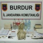 Jandarma Komutanlığı ekipleri tarafından Bucak İlçesi Elsazı köyünde ikamet eden B.Ü. isimli şahsın ev ve eklentilerinde yapılan aramada 15 adet muska, 8 adet cevşen, 165 adet muhtelif boyutlarda Arap alfabesine göre yazılmış kâğıt, 5 adet su dolu pet şişe içerisine Arap alfabesi ile yazılmış kâğıtlar, 7 adet boş senet, 10 adet muhtelif içerikli dini kitap, 1 adet sahte mermer kraliçe heykeli, 1 adet kama, 1 adet 6.355 mm çapında kurusıkından bozma tabanca, 1 adet tabanca şarjörü, 2 adet 6,35 mm çapında tabanca mermileri ele geçirildi.