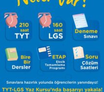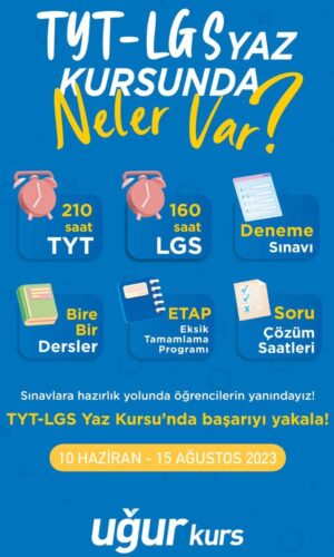 10 Haziran- 15 Ağustos tarihleri arasında yüz yüze uygulanacak olan LGS Hazırlık ve TYT Hazırlı Kursu ile 2023-2024 eğitim öğretim dönemi sınav hazırlıklarına erkenden başlayacak.