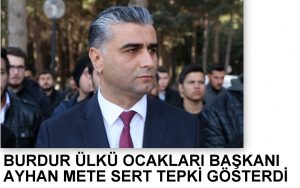 Burdur’da Ülkü Ocakları İl Başkanı Ayhan METE olarak,İlimizde Ülkü Ocakları adına konuşacak tek merciin şahsım olduğunu,başka kimselerin haddi ve harcı olmadığını bildiririm.Bizler Ülkü Ocaklı Türk Gençleri olarak Liderimiz Sayın Devlet Bahçeli’nin emrinde,Genel Başkanımız Sayın Olcay Kılavuz’un öncülüğünde davamızın hizmetindeyiz. Unutmayın !