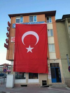 Burdur Ülkü Ocakları Başkanı Ayhan Mete, vatandaşları ev ve işyerlerine Türk Bayrağı asma çağrısında bulundu. Mete Ülkü Ocakları binasına dev bir Türk Bayrağı astı.