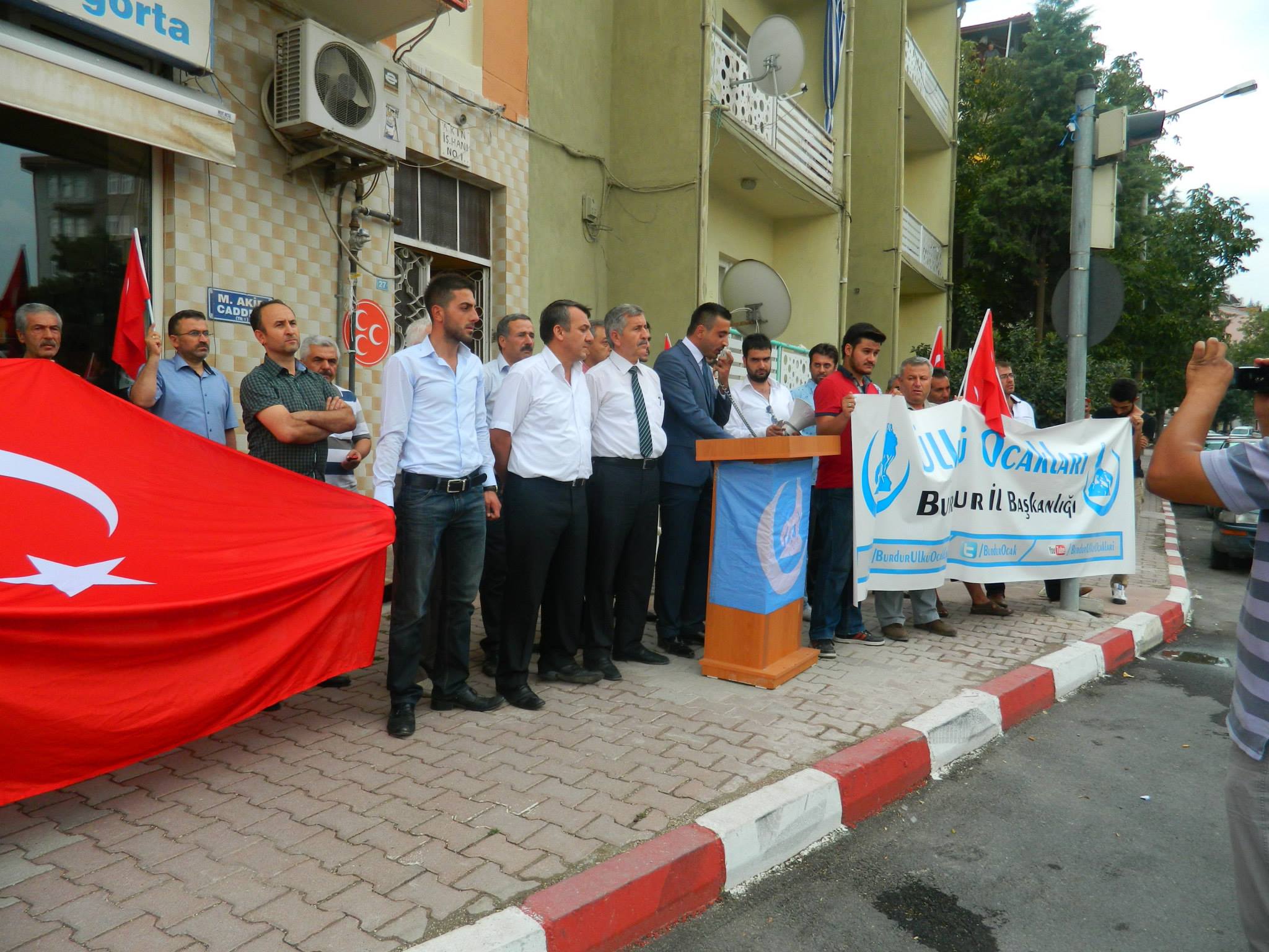 MHP İl Başkanlığı önünde basın açıklaması yapan Ülkü Ocakları Başkanı Mustafa Akkın şunları söyledi ;