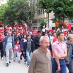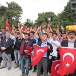 MHP İl Başkanlığı önünde toplanan ülkücüler ellerinde Türk Bayrakları ile Köprübaşından Cumhuriyet Meydanına kadar  “Aponun itleri, yıldıramaz bizleri”, “Bayrak inmez vatan bölünmez”, “Bayrağa uzanan eller kırılsın” şeklinde slogan atarak yürüdüler. Yürüyüş yapan gençlere yol boyunca vatandaşlarda alkışlarla destek verdi.