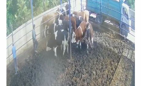 Yaşanan olay işyerindeki güvenlik kamerasına an bean yansıdı. Görüntüde üreticinin hayvanların yanına gelmesi, dananın saldırısı sonucu havaya sıçrayıp yere düşmesi ve çalışanların üreticiyi kurtarması yer aldı.