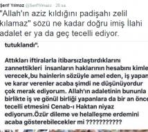 “Attıkları iftiralarla itibarsızlaştırdıklarını zannettikleri insanların haklarının hesabını kimler verecek, bu hainlerin sözüyle amel eden, iş yapan ve karar verenler acaba şimdi ne düşünüyordur çok merak ediyorum. Allah’ın adaletinin bununla birlikte iş ve gönül birliği yapanlara da bir an önce tecelli etmesini Cenab-ı Haktan niyaz ediyorum. Özür dileme ve helalleşme erdemini acaba gösterebilecekler mi?”