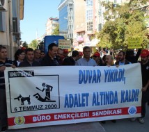 Duruşma süresince Ankara’dan gelen Büro Emekçileri Sendikası (BES) Üyeleri “Duvar Yıkıldı, Adalet Altında kaldı” yazılı pankart açtılar ve slogan attılar. Emniyet Kuvvetleri geniş güvenlik önlemleri aldı.