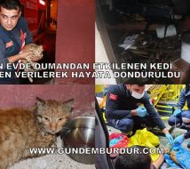 YANAN EVDE DUMANDAN ETKİLENEN KEDİ OKSİJEN VERİLEREK HAYATA DÖNDÜRÜLDÜ | Gündemburdur.com