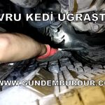 BURDUR’da Burdur’da park halindeki bir otomobilin motor bölümüne giren kediyi çıkartmak hiçte kolay olmadı.